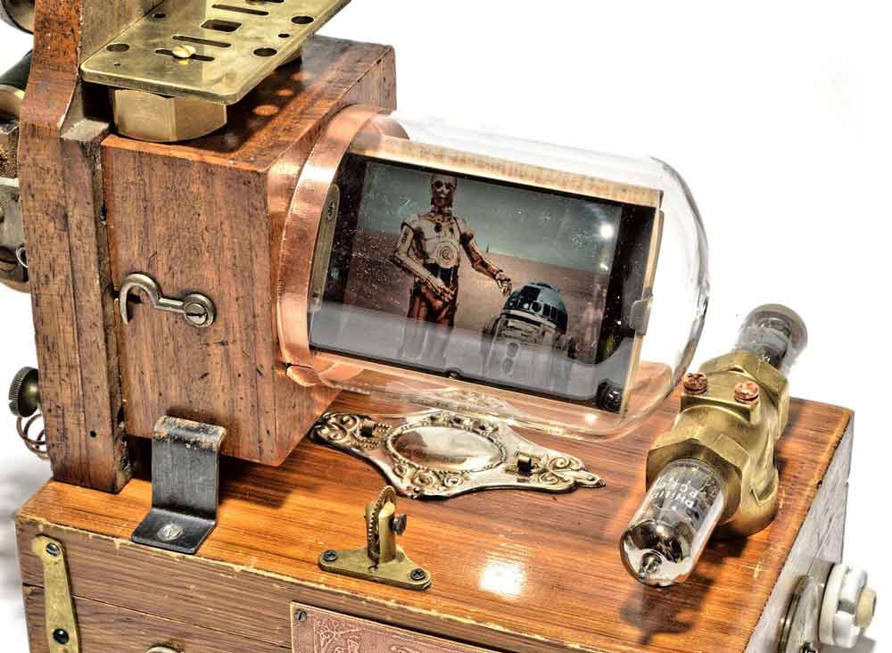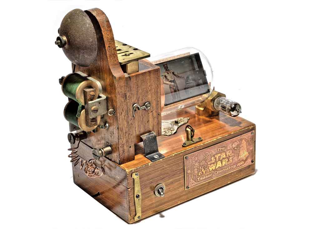 Das neueste Produkt des Schweizer Künstlers und Retrofuturisten Dan Tännler aka Dan Aetherman ist der "STAR WARS Teaser Cinematograph". Diese Maschine spielt alle Trailer der legendären STAR WARS Saga auf einem kleinen, sehr speziellen, LCD-Bildschirm ab.